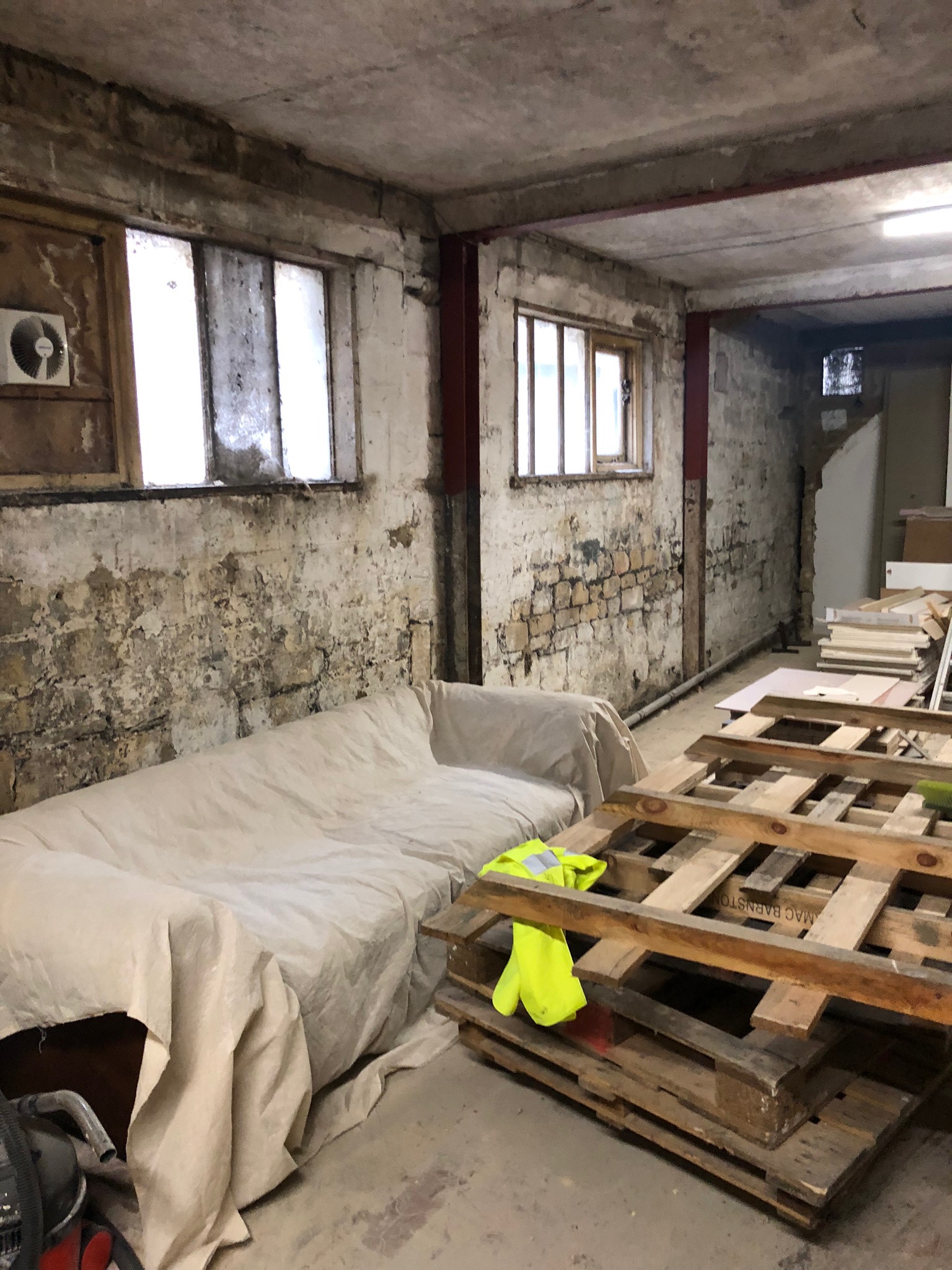 The vaulted areas have been neglected for decades, so preparing these areas for any form of commercial development is a challenging undertaking. After removing vast quantities of rubbish, the walls were sandblasted after which the natural beauty of the locally sourced Bath stone was revealed. These words do little to articulate the scale of this exercise or the subsequent ‘tanking' work that successfully ‘waterproofed' this hitherto most dank of areas.
